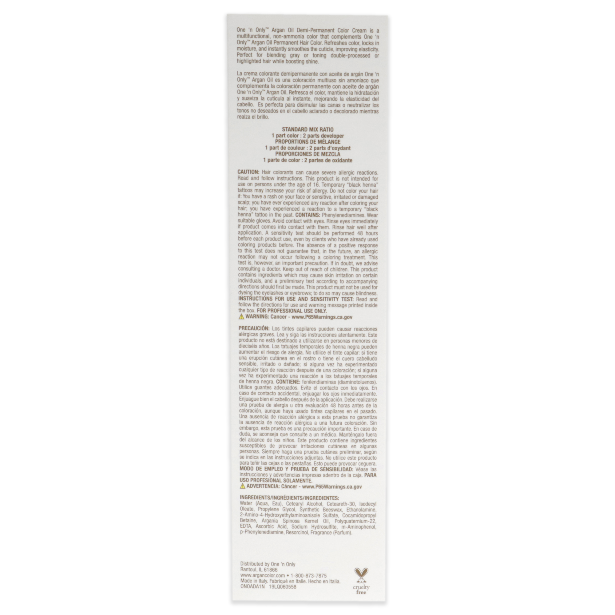 Argan Oil Demi Permanent Hair Color 5ch Light Chocolate Brown One N Only Hair Care